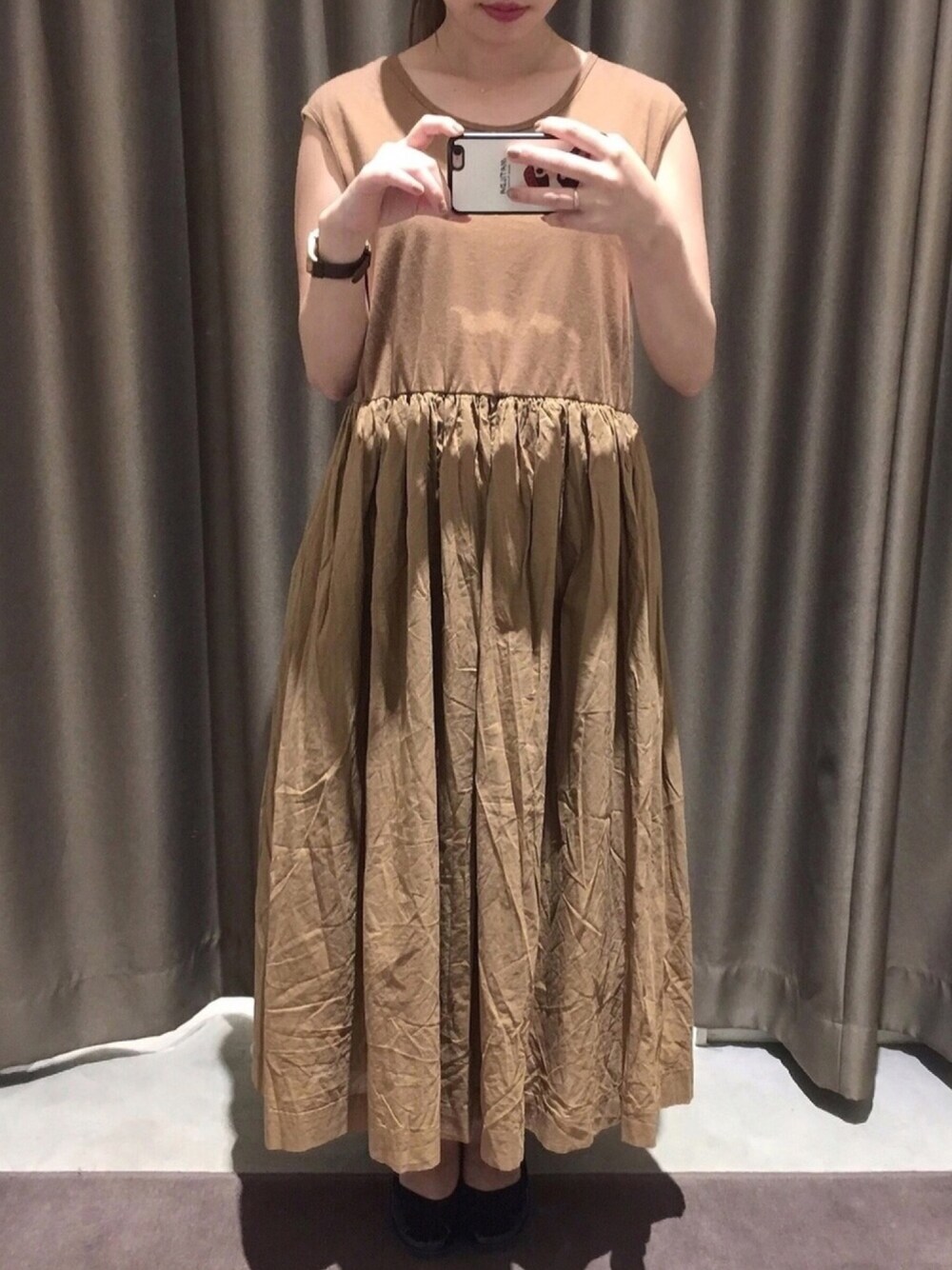 新しく入荷した beigeワンピ 。 悩んだ挙句 試着したら やっぱり可愛かった...けれど腕のお肉が気になって… 店員さん優しく相談に乗ってくれて、癒されました。ダイエットして買おう。