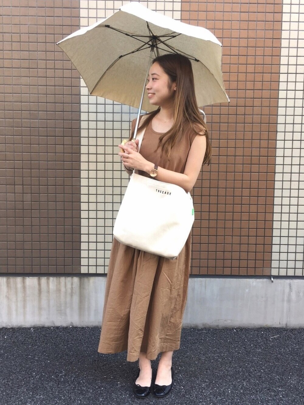 YUMIの折りたたみ傘「サントリーノ晴雨兼用折り畳み傘」を使ったコーディネート