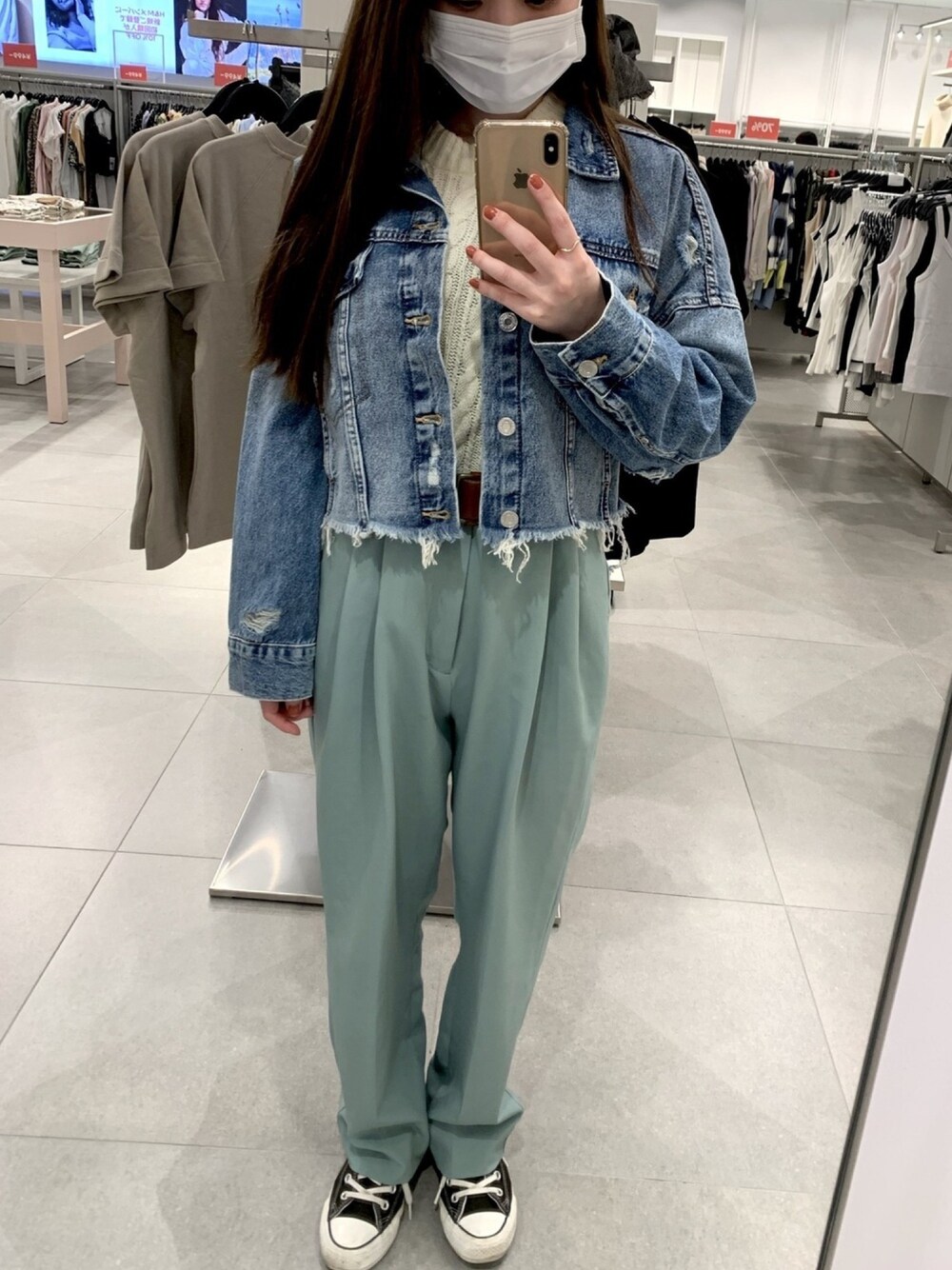 試着です。ショート丈のデニムジャケットを買いました👕🙂