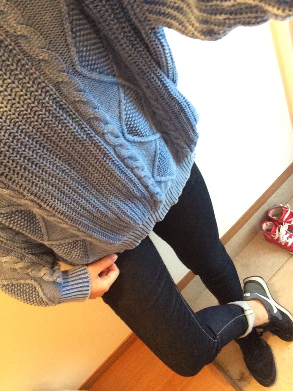 Yuka のニット/セーター「ウォッシュ カラー ケーブル ニット」を使ったコーディネート