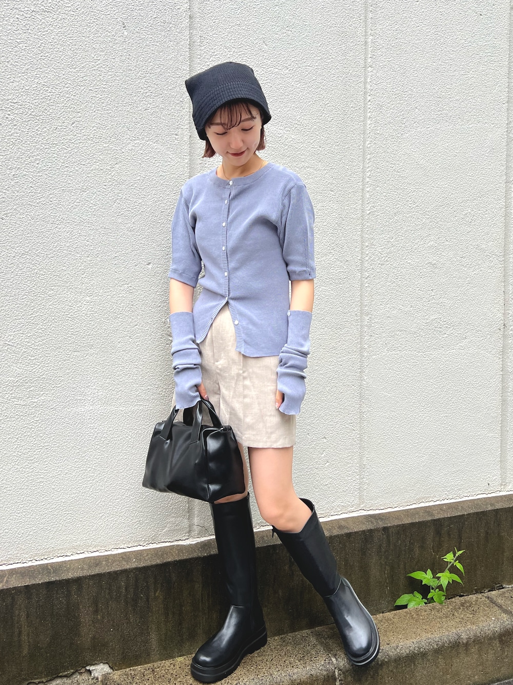 【スタッフレビュー】 骨格:ストレート パーソナルカラー:イエベ秋 【tops】 アームウォーマーがsetになっており、ボタンで取り外しができるようになっているため、長袖でも半袖でも着て頂けます!そのため、温度調節が簡単にできます◎生地は程よいゆとりを持って着れますがコンパクトでスッキリ見えます! 【bottom】着用サイズ:free 159センチで太ももの真ん中あたりの丈で着ることができます◎少し短めですっきり着れるのでより脚長効果があります。今年は特にトップスや羽織が大きめサイズが多いので、ショートボトムにブーツ合わせはオシャレ見え間違いなしです! 【boots】 履くと脚と一体化してくれるような感覚で、5㌢強のヒールがありますがそれを感じないくらい歩きやすいです!膝下くらいの丈感で、ふくらはぎのラインはやや細めなためすっきり見せてくれるのも綺麗に履けて嬉しいポイントです。 【bag】サイズ:free コンパクトに見えつつ、中身は大容量入るbag。500㎖のペットボトルや長財布も入ります。 肩掛け紐がついており、持ち手が丸みを帯びてクッション性があるので肩が痛くなりにくいです!