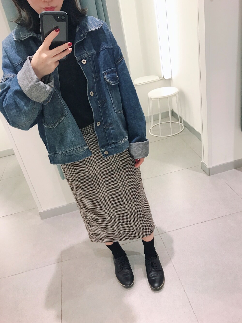 GUのチェックスカートは本当使えるからずっと履いてます😊✨✨