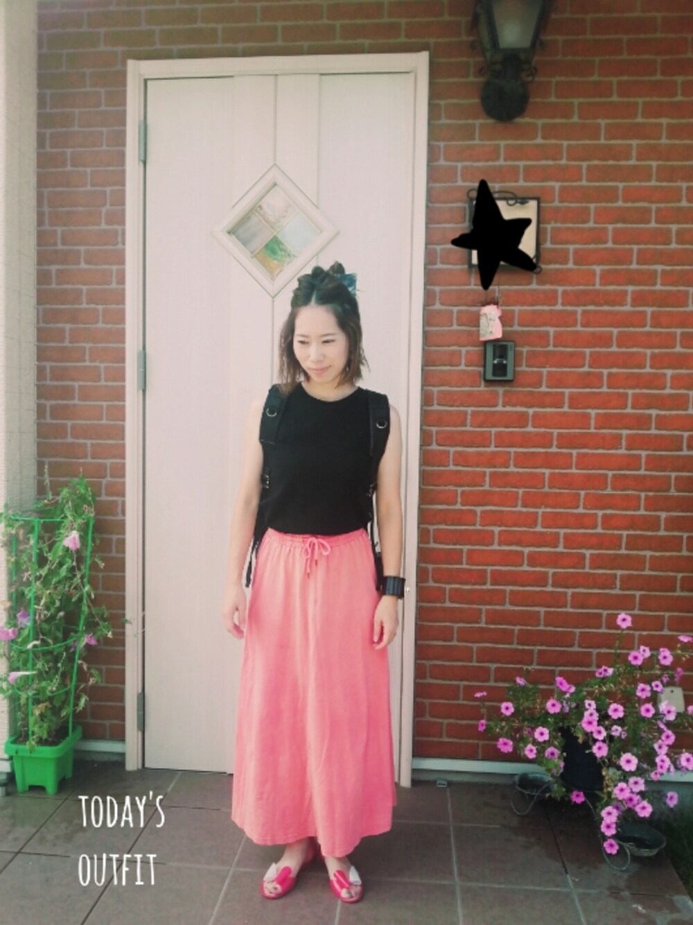 たまにこーゆー色も着たくなるー! 同系色のサンダルで合わせて、女性らしさを出してみました(笑)