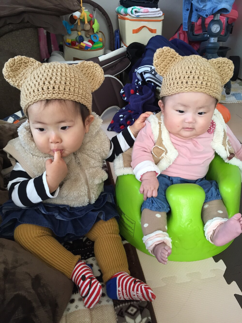 ぐちゃぐちゃ… 2人のために作ってもらったくまさん帽子♡ かわいいー♡