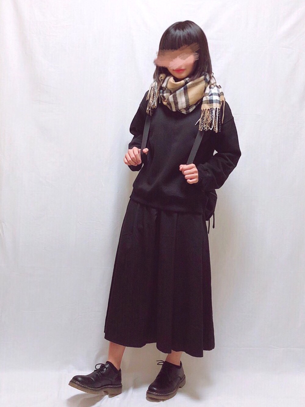 チェックのストールはGUで1490円🎵 スウェットもGUで990円のプチプラコンビです🙆🏻♀️ オールブラックにベージュのチェックが映える✨ ストールの巻き方はJUNさんのYouTubeを見ました〜☺️ Instagram▷▷▷yua__wear
