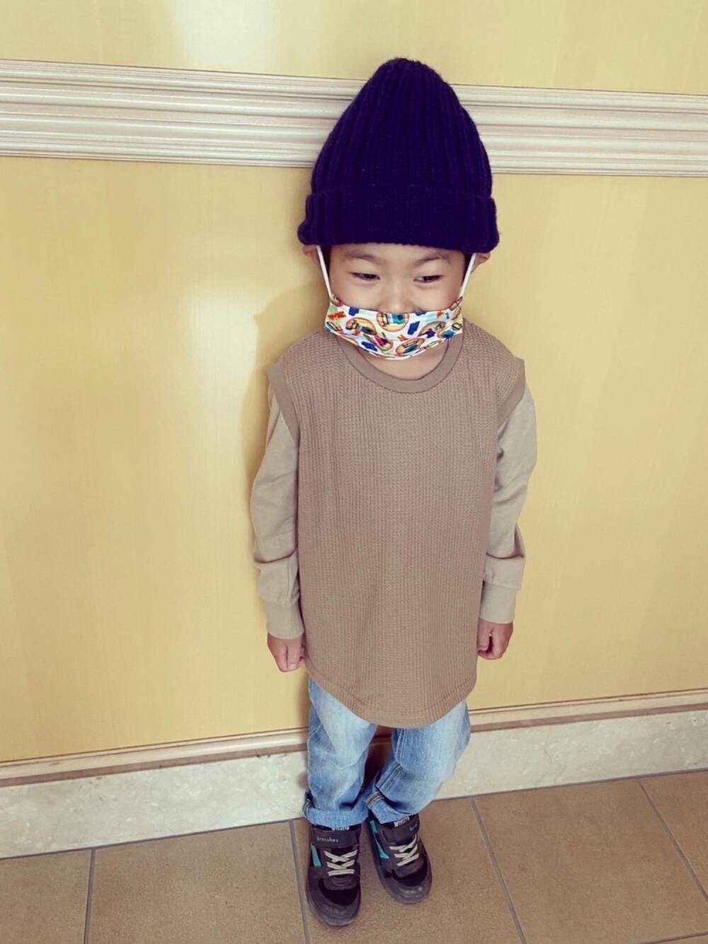 保育園でごめん🙏 今日は2人とも仕事… プチプラのあや様のレイヤードトップス プラレールのマスク 拝見して頂きありがとうございます♡ シンプルスタイル