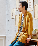 アフリカン柄のワンピースに あえてメンズサイズのニットカーデを合わせてゆったりと。 秋らしいカラーのコーディネート★