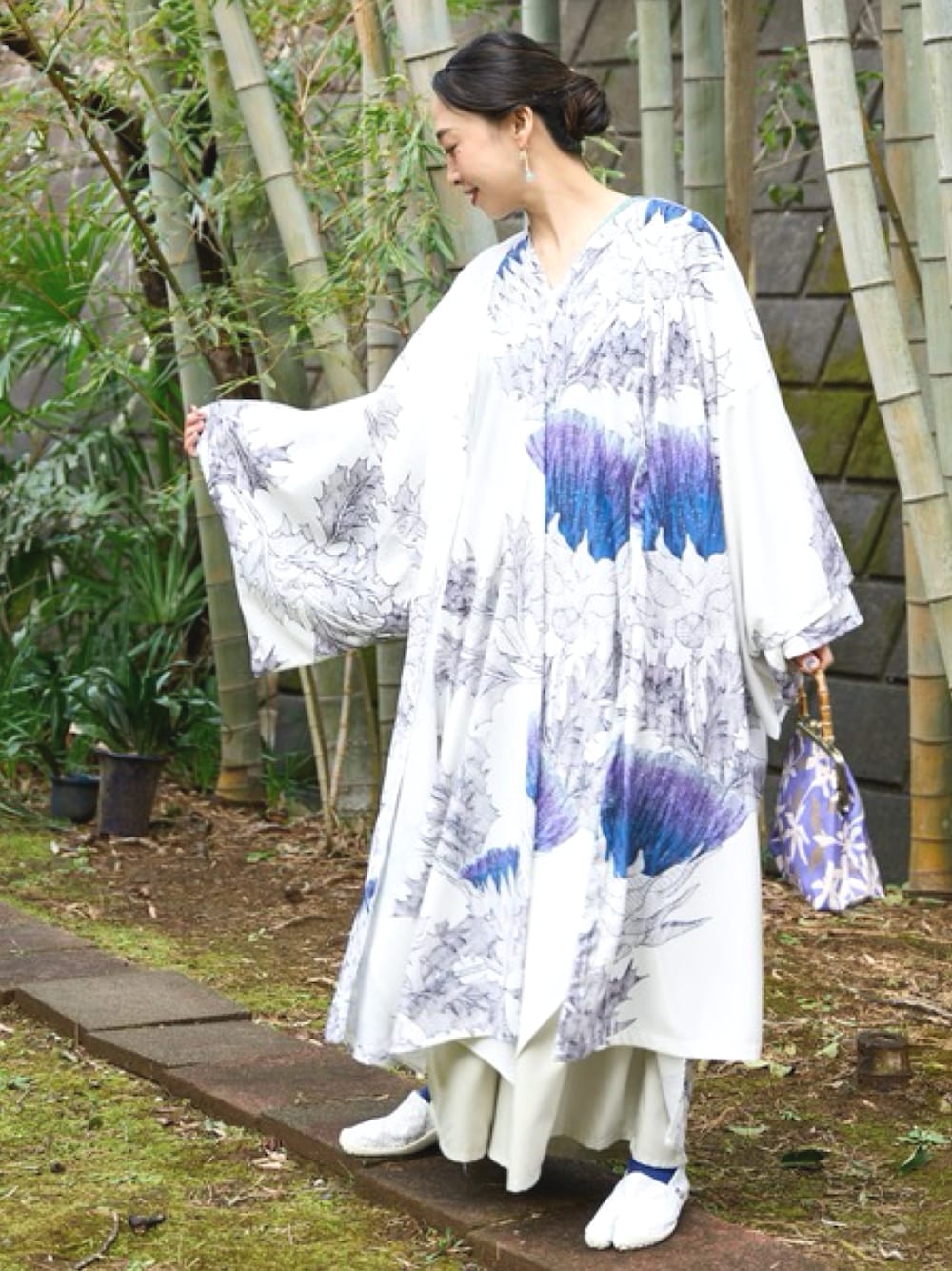 咲き誇るアザミの花。 長羽織とワンピースのセットアップ。 手軽に和モダンスタイルが愉しめます。