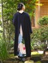 着物の隠れたお洒落『八掛』をイメージしたワンピースに新柄が登場。 シックなネイビーで着やすさも◎ 手軽に和の装いを愉しめます。
