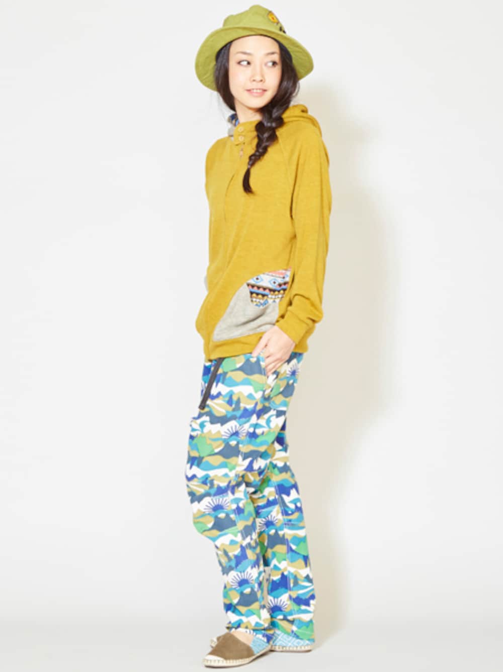 ☆チャイハネオリジナルのカモフラージュ柄パンツ★ よ~く見ると、山や木々の間から顔をのぞかせる太陽や月のモチーフたちが描かれたユニークなデザイン☆★ ラフでカジュアルなコーディネートに♪ 外遊び・フェススタイルにもおすすめです◎