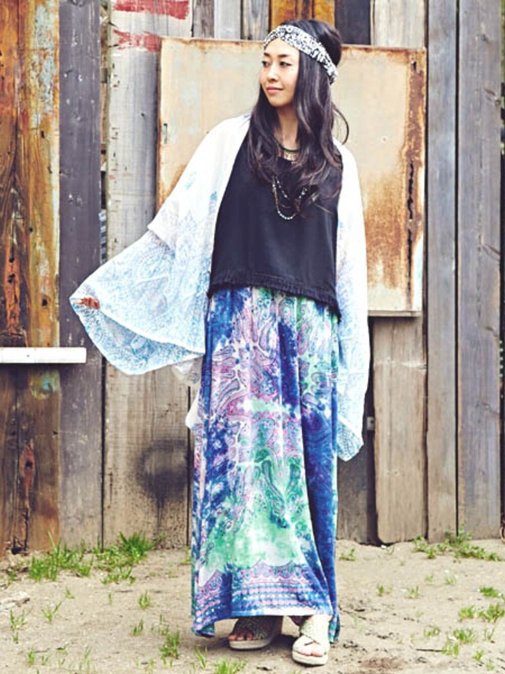 夏を彩るボヘミアンスタイル☆★ 陽射し除けに便利な インド綿のストールをコーディネート♪ フェススタイルにもおすすめです◎
