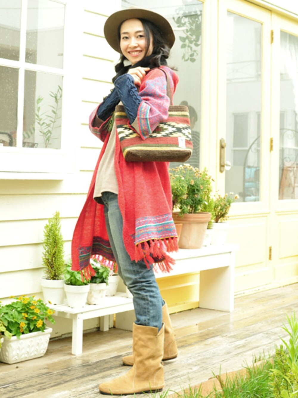 Zenyaのカーディガン/ボレロ「【チャイハネ】オリエンタル柄フリンジロングコーディガン」を使ったコーディネート