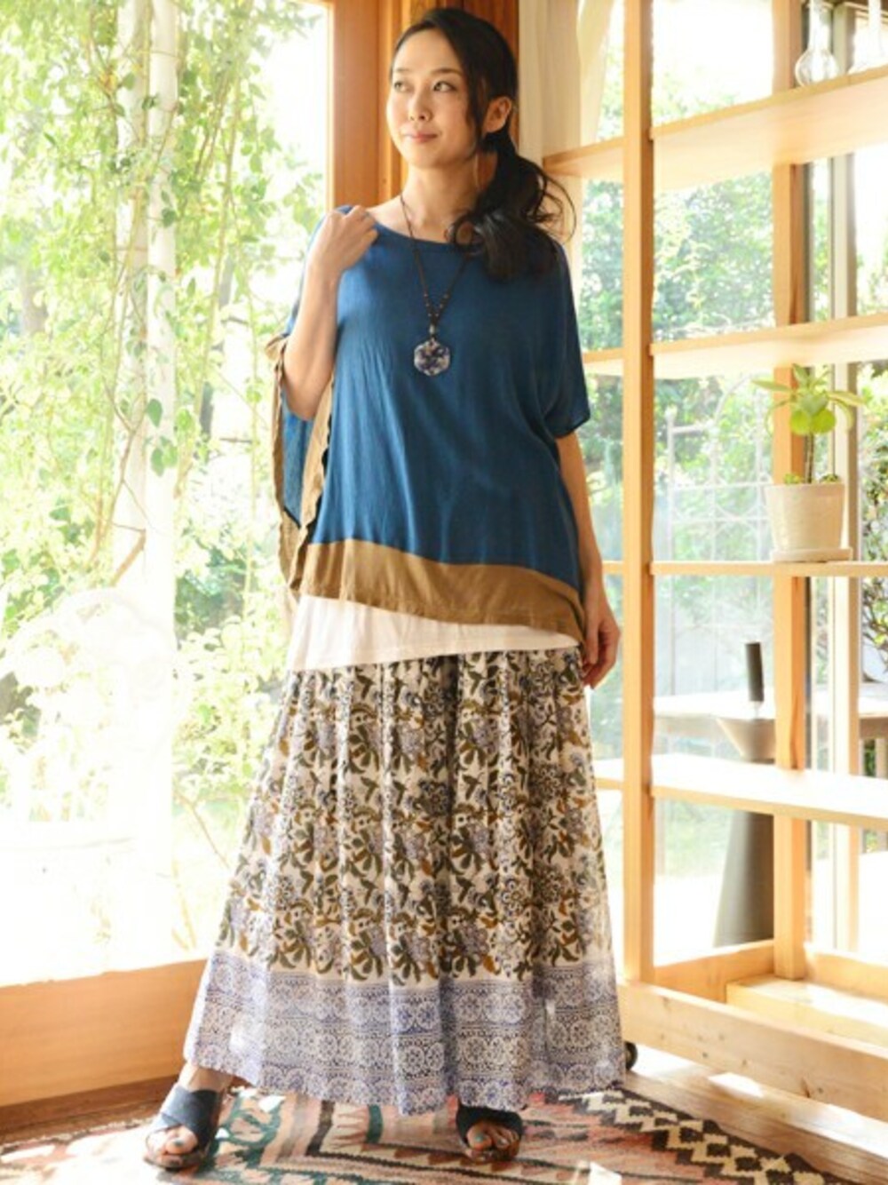 ボタニカル柄のワイドパンツで 爽やかな春コーデ**