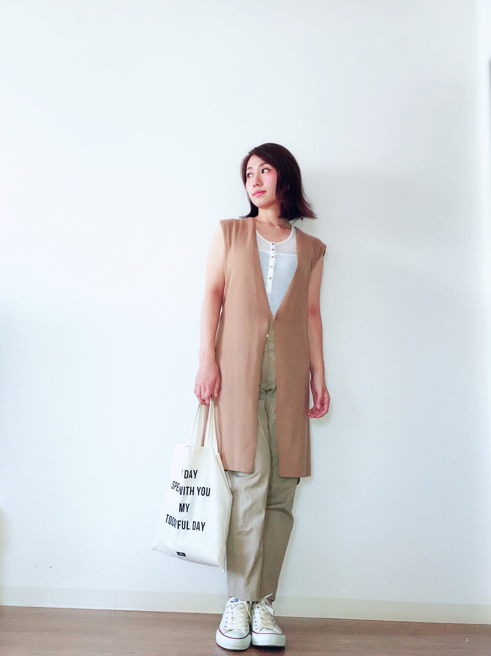 guのニットベストとtodayfulのチノパンを色を合わせて着てみました✨☺️若干色味違うけど、、、笑 ボーイッシュな感じ凄く好きだけど難しいな😊💕もっともっとファッションの事勉強したいな😉❤️ファッションは正解がないから本当楽しい😃💕