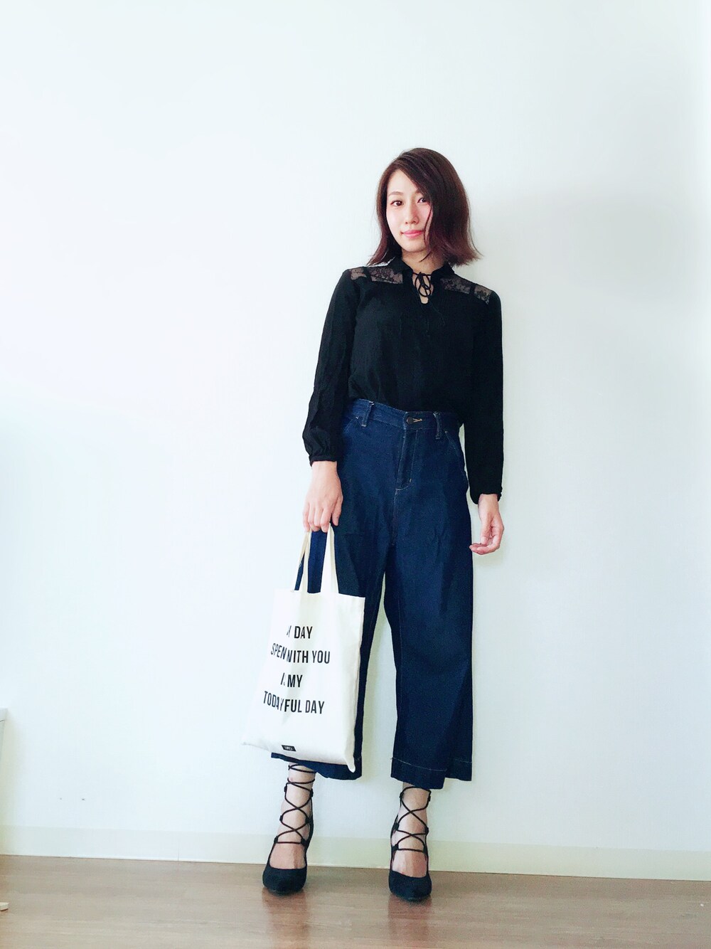 オールGUです😍💕 トップスのシャツは肩にレースがあり抜け感がでるので私腕が太いけど華奢にしてくれます💕😍 ガウチョデニムはだいぶ前に500円で買ったもの😉🎵 パンプスもGUで凄く履きやすいし足を綺麗に見せてくれます☺️❤️ かなりプチプラコーデです😃💕 いつもいいね💕してくれる方ありがとうございます😉⭐️😉