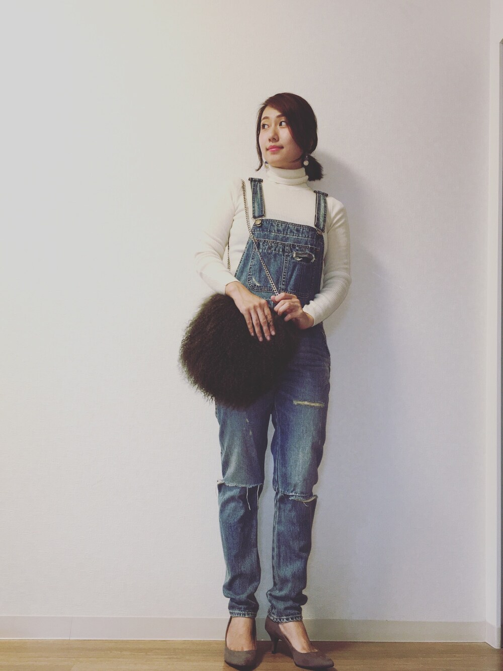 UNIQLOのタートルネックにungridのサロペットをあわせました😊 タートルネック丸顔が強調される🙄😅 やばい笑 タートルネック冬いっぱい着たいから痩せるしかない😅😱笑