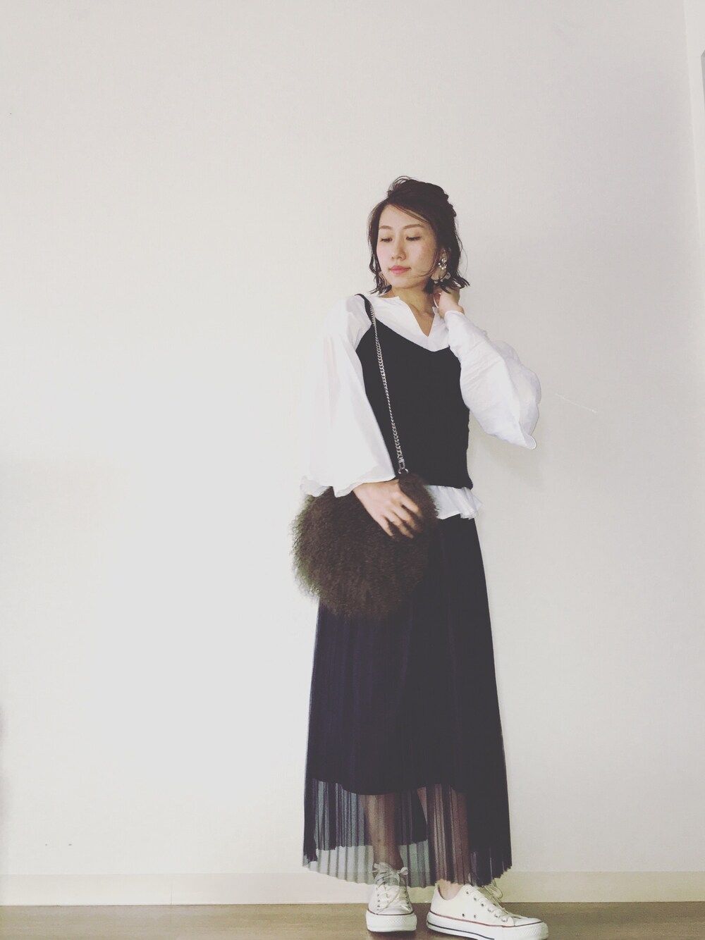 今日のoutfitはシャツにキャミソールを重ねシャツの裾をだした方が可愛いかったのでだしました♡ キャミソールとプリーツスカートはGUの物でネイビーに揃えました(ृ ु ´͈ ᵕ `͈ )ु💕 このチュールプリーツスカートふわふわしてボリュームがあって可愛いです😉🍒 今日はこんな感じでした😉🌻 イイネくれる方いつもありがとうございます😊 wear見てると本当にオシャレさんばかりでしかもmamaの方多くって皆さんmamaに見えなくて細いしオシャレで本当自分も頑張らないとっで思うな😅☹️💓