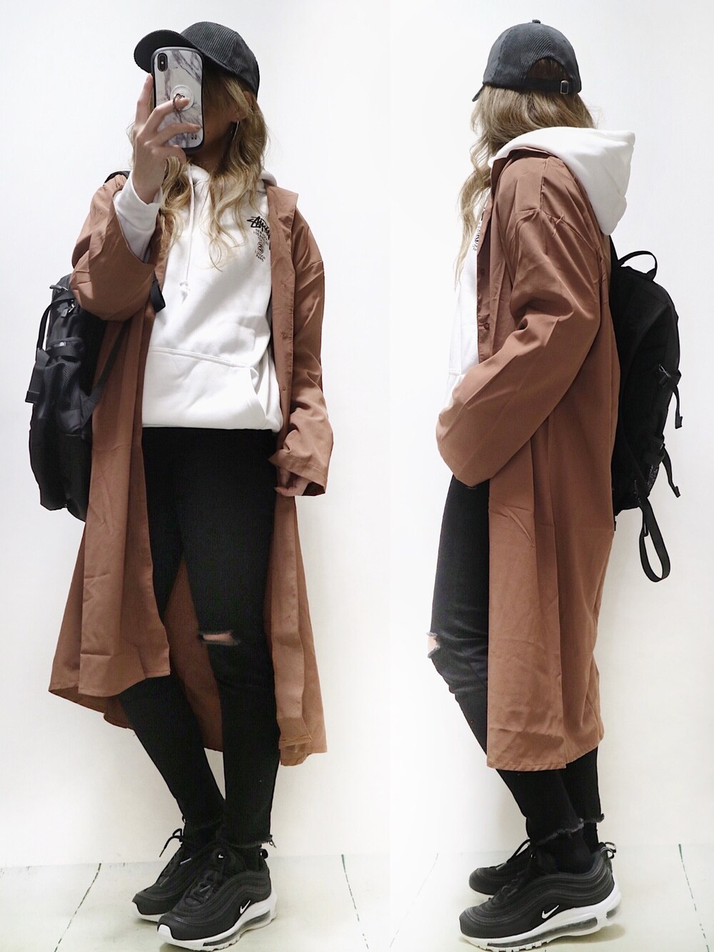 シャツワンピで太もも隠して美脚に見えますように✨コーデです。 腕まくりはちゃんと折らないとずり落ちちゃうトロみ素材やけど、A4サイズに畳んでも厚さ1cmに収まるんじゃないかってくらいコンパクト設計な羽織り🌈☺️脱いでも邪魔にならんし、シワも簡単にのびるんがいいところです。着心地もお手入れも楽チン♬ シャツワンピ(F)/ブラウン パーカー(L)/ホワイト スキニー(27)/ブラック スニーカー(24、UK5.5、EUR38.5)/ブラック 足の大きさは23.5cmです☺️