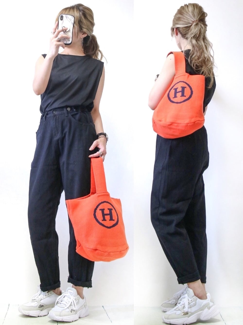 インスタのDMはお気軽にです🤗 お返事させて下さい💌 (インスタ→@yuberra.01) ニット製の小物使うだけでもコーデが秋っぽくなる気がします😊 オレンジ🧡って思ったより合わせやすいです! ノースリーブ/ブラック デニムパンツ/ブラック カバン/オレンジ くつ(23.5)/ホワイト 足の大きさは23.5cmです☺️