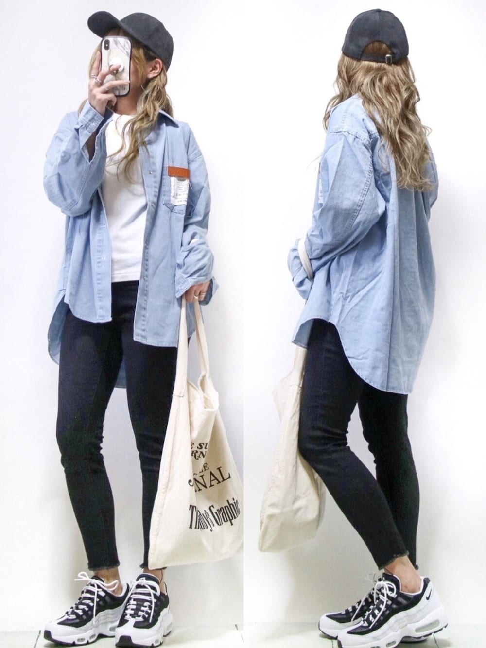 胸元の皮のワッペンめちゃめちゃ可愛くないですか😍 ゆるいサイズでパーカーの上からも羽織れる大きさでお気に入りに追加♡ お尻や太ももも隠れるし早速黒スキニーと合わせました🥰 インスタのDMは順次お返事させて頂いてます🥰💌 (インスタ→@yuberra.01) シャツ/ブルー Tシャツ/ホワイト(L) 黒スキニー(27)/ブラック くつ(24cm)/ 足の大きさは23.5cmです☺️