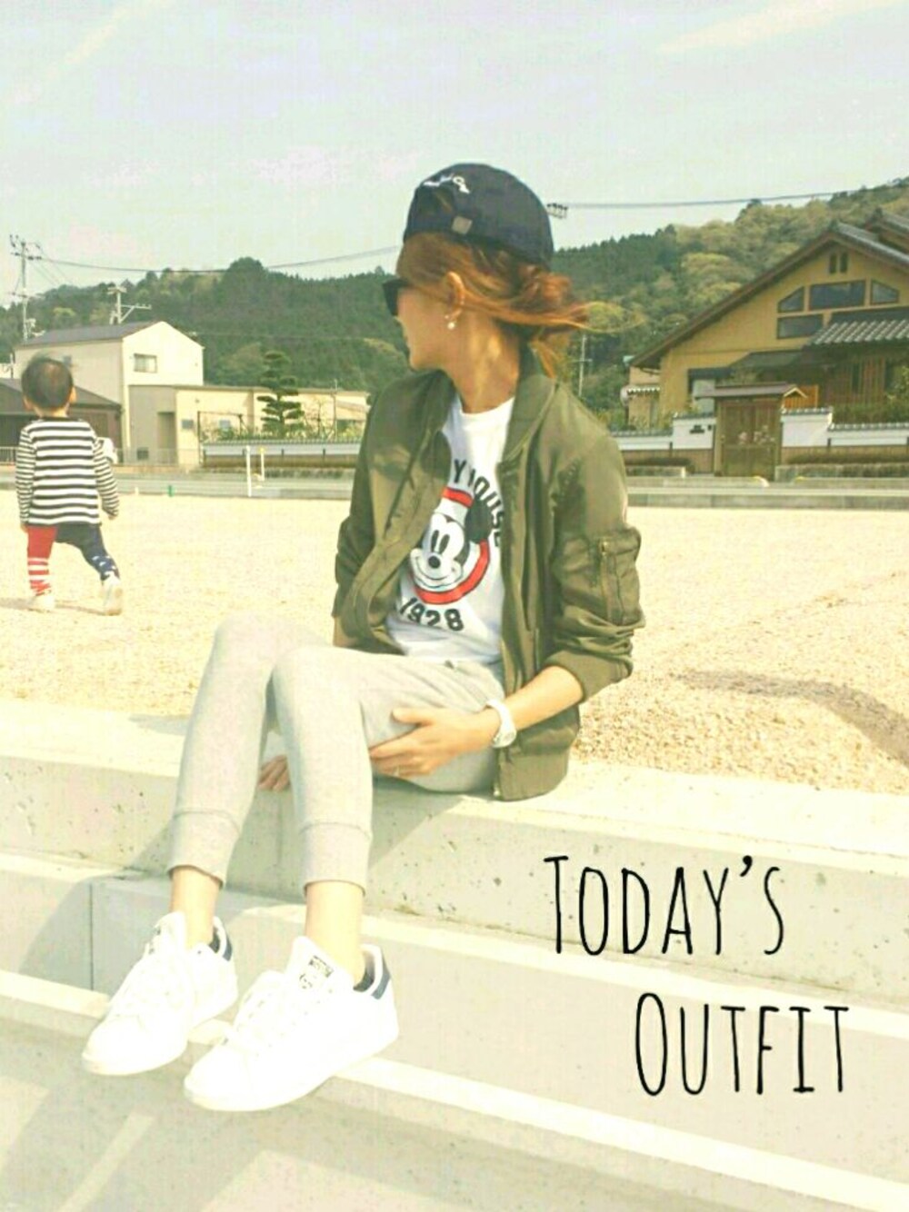 ラフコーデ♡ ✅スエパン ✅ミッキーtee ✅ma1