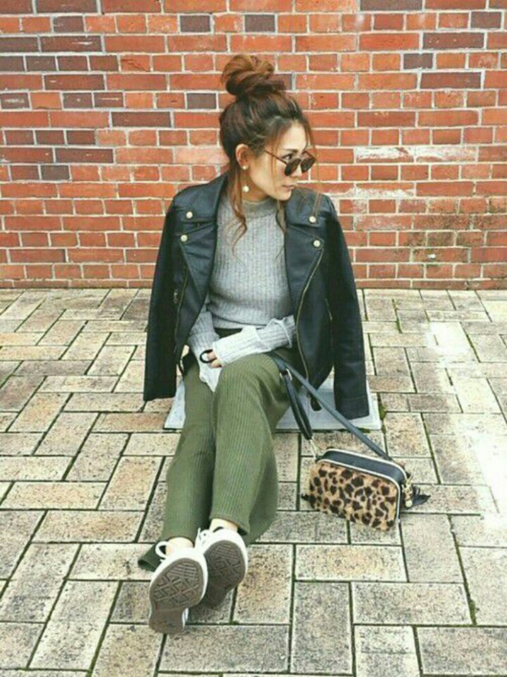 リブニットにリブワイドパンツ ライダース♡ 全身プチプラBBAでした💁 リブワイドパンツは しまむらで500円だった🙌 げきやすww Instagramやってます❤ ☞amu.yuka あそびにきてください♡