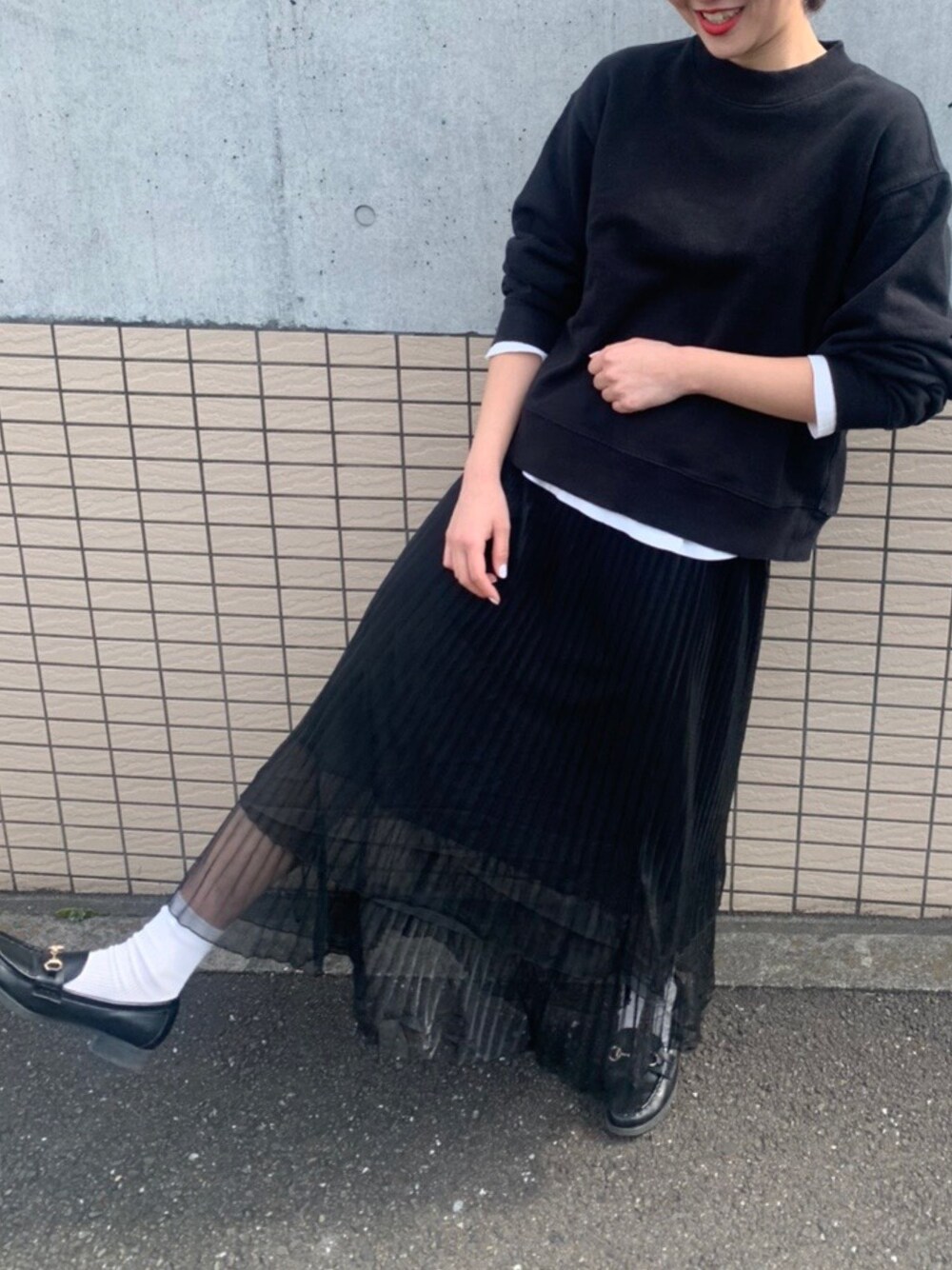 プチプラモノトーンコーデ⚫️⚪️ レイヤードスカートのシースルーでトレンド⭕️