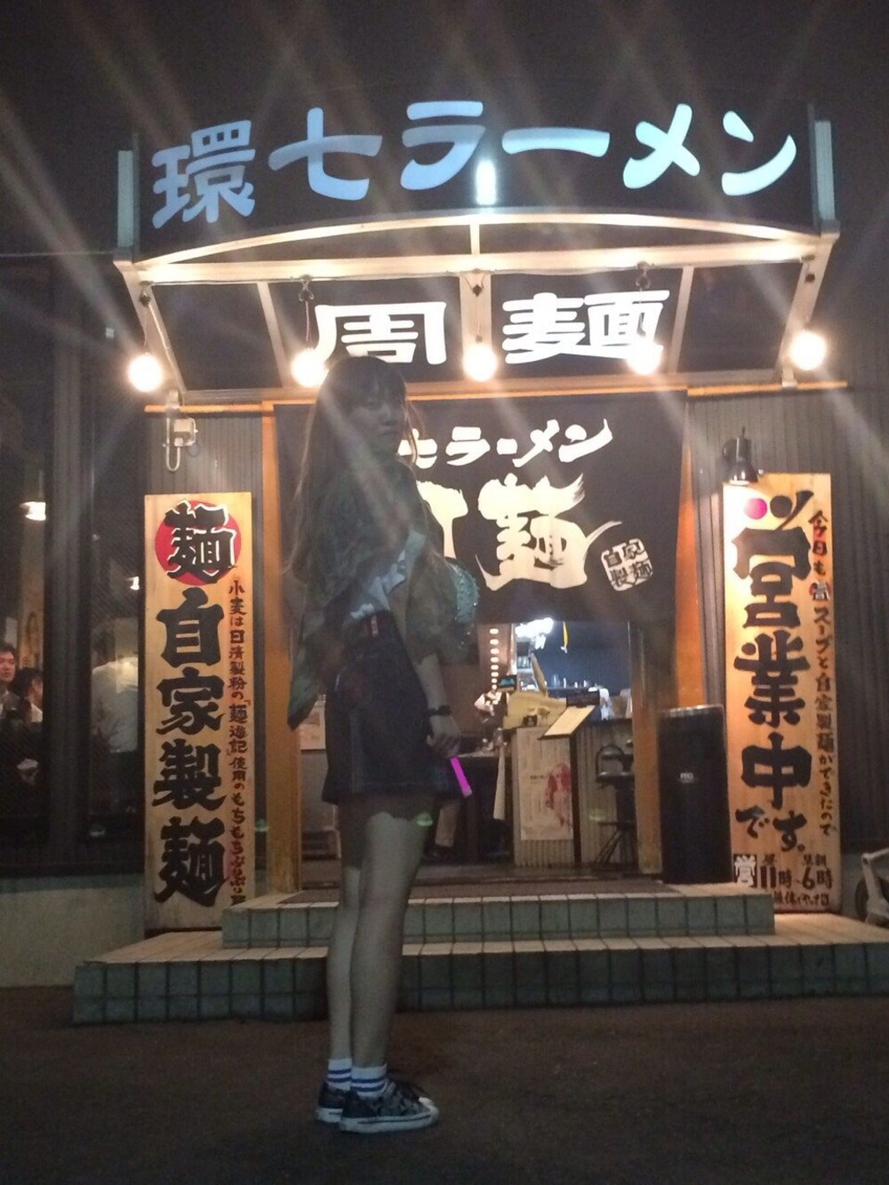 CLUBのDJイベントに行った時 大好きなラーメン屋環七٩꒰৹৺৹ઌ꒱♡ しゃつ/CANDY STRIPPER てーしゃつ/? すかーと/DAISY LOVERS すにーか/COACH 小学生の時履いてたDLの150cmが入った奇跡!!