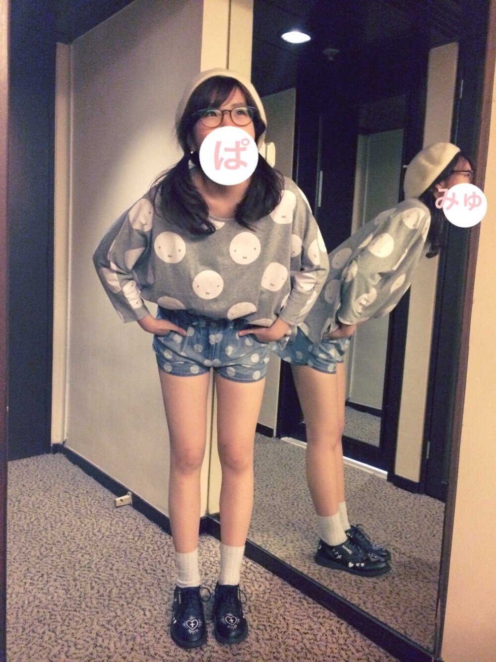 ALL miffy × 2%❤︎ 香港でミッフィーの洋服を発見!!! よく見るとドットがミッフィーの顔❤︎ カットソーとパンツを柄Set up