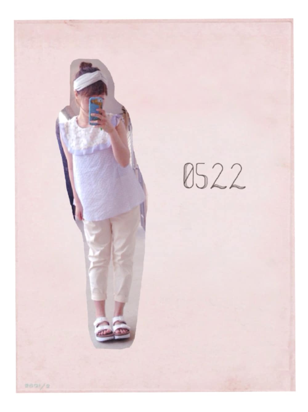 だいすきなflowerの水色ブラウス❁ 白のパンツでカジュアルに꒰ ´͈ω`͈꒱ 歩くのらくちん、厚底で身長盛れるコンフォートサンダルがお供!