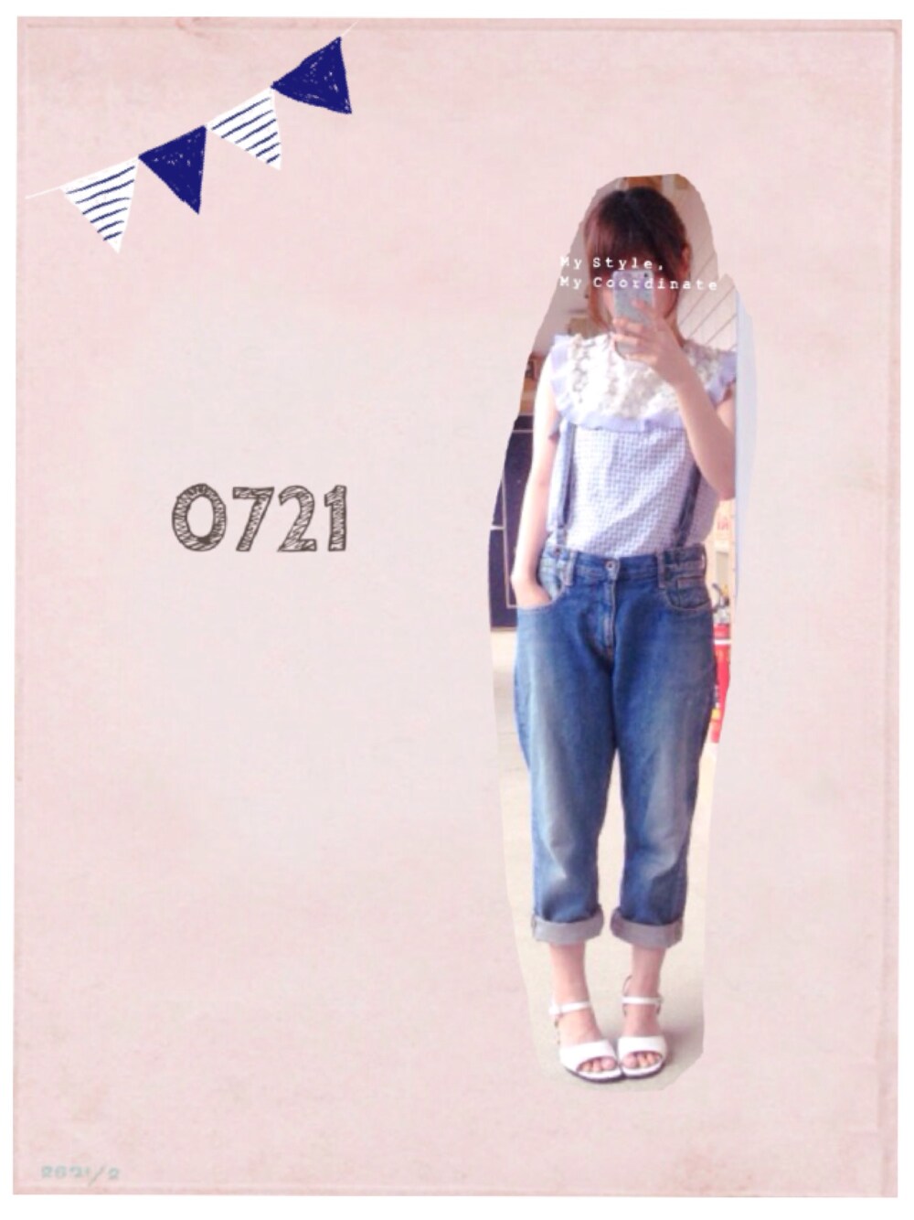flowerのかわいいブラウスに 古着のだぼっとしたデニムを合わせました。