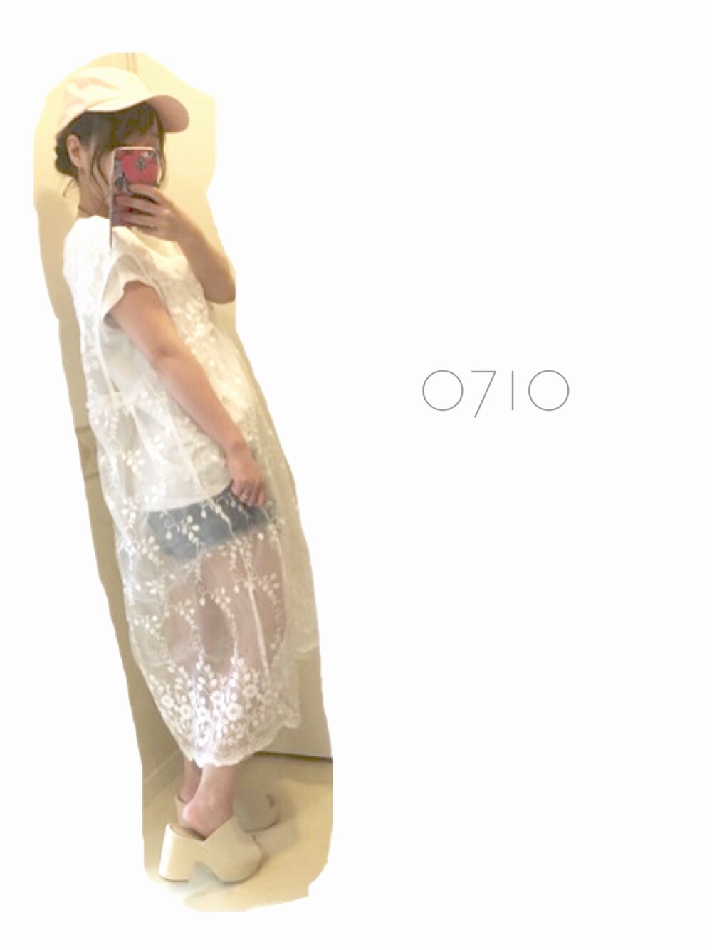 白T、デニムショーパンにレースワンピを重ねました。 キャップはピンクです❁