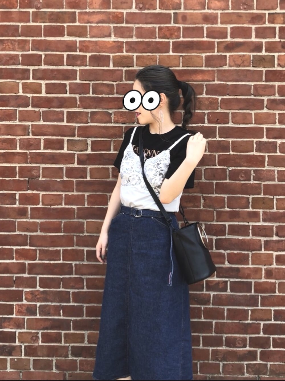 *insta* kyakyakyaffff ビンテージのランジェリーキャミ 夏はTシャツに合わせて着るのがかわいい!