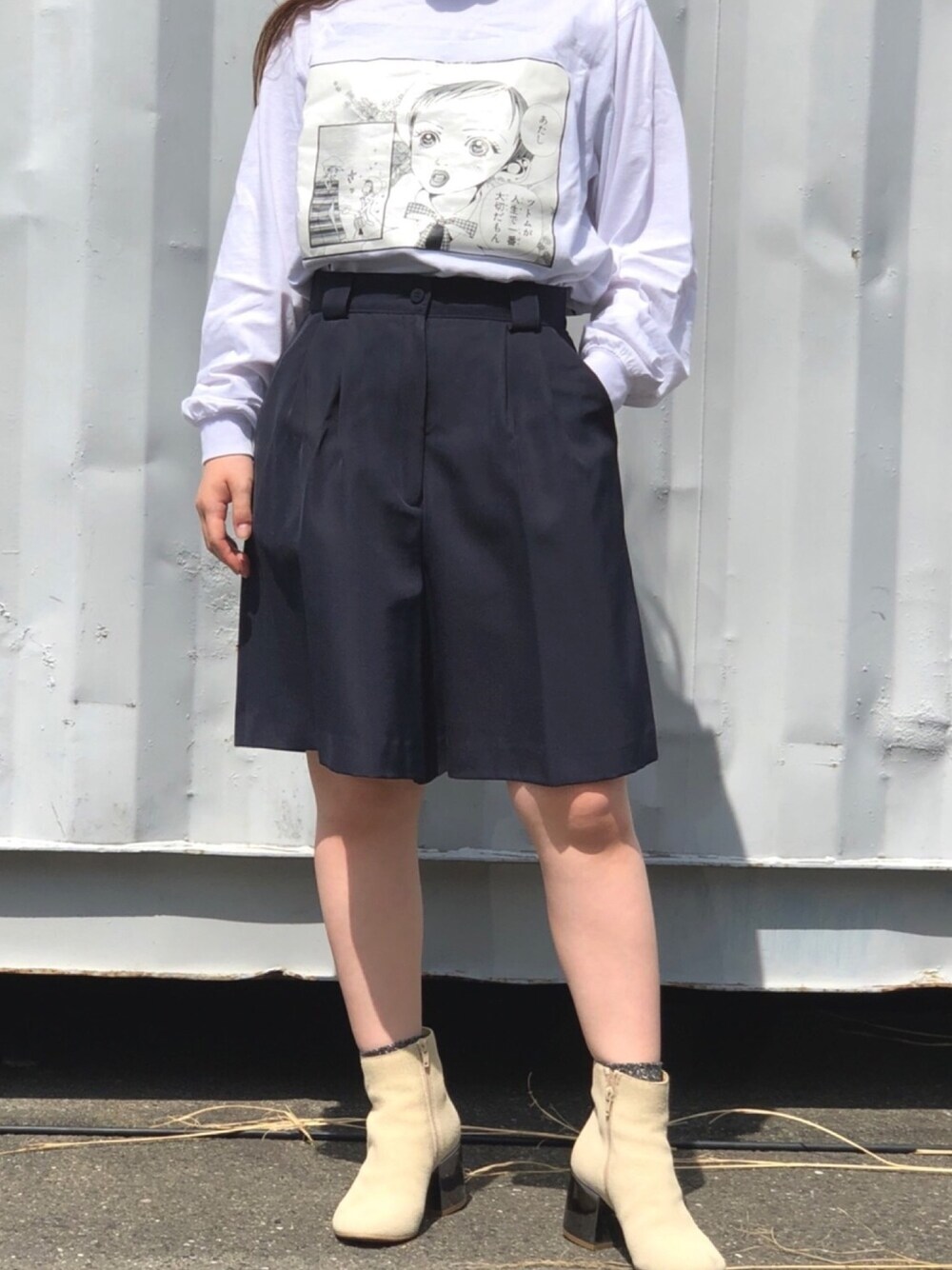 *insta* kyakyakyaffff ママにもらったお下がりの短パンがいい感じのビンテージ感! Tシャツに合わせて少年風〜👦🏻