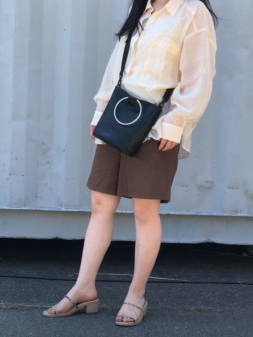Insta yuchi_150 シアーシャツと短パンの組み合わせ クーラーで寒い中で1枚あると便利〜