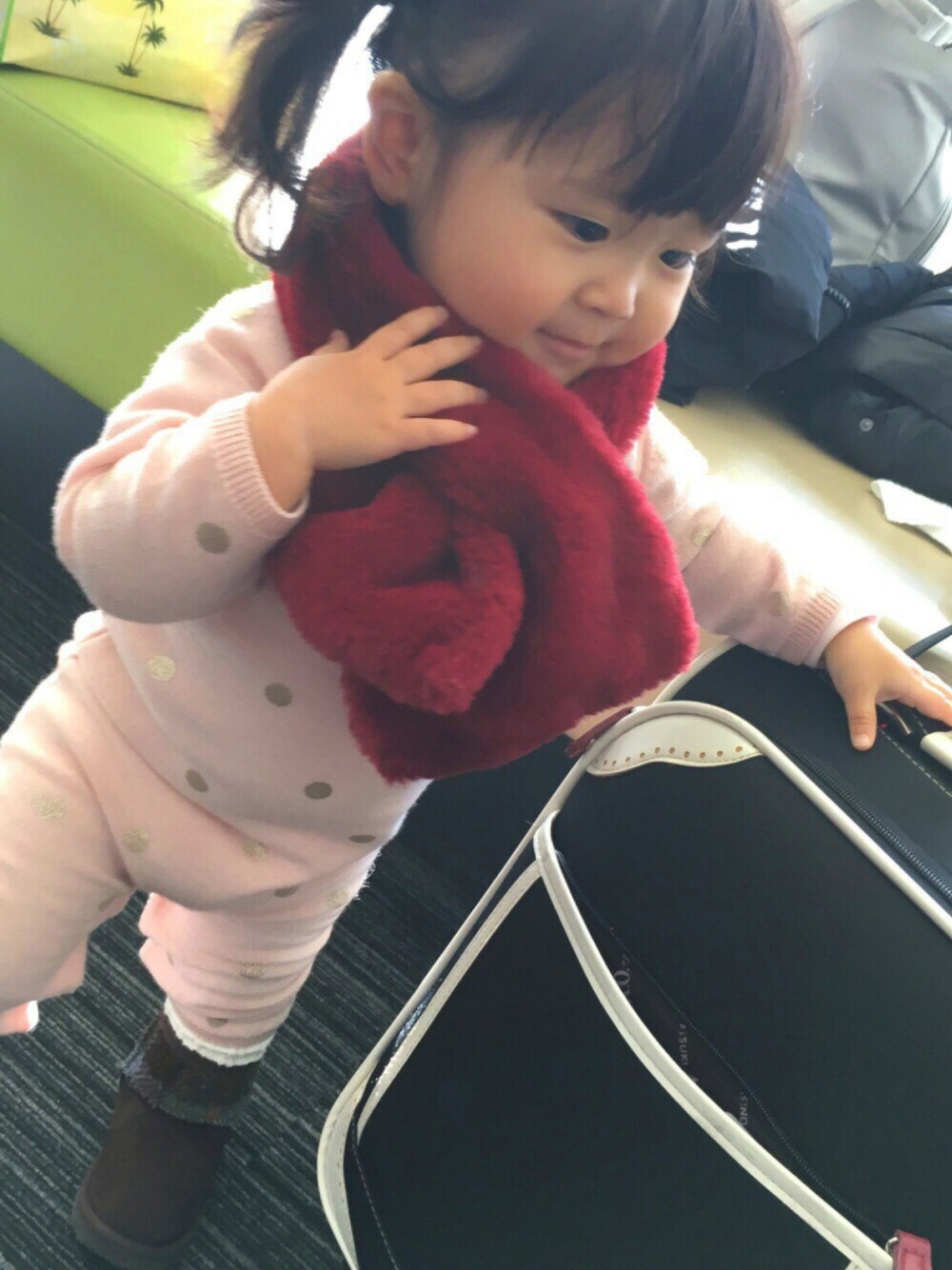 peachの遅延を仙台にやっと、仙台到着✈ Bonpointのロンパースがぴったりに♡ この歳でロンパース…可愛いすぎる😱💕 ロンパースコーデです¨̮ そして妹が阪急で見つけてくれた赤マフラーが差し色でいい感じ😌❤️ ムートンブーツにコートとベスト、あと羊帽子で完璧😎✨ さあ、街へ出るぞーい!! saveといいね、嬉しいです(•ө•)♡ ありがとうございます♡