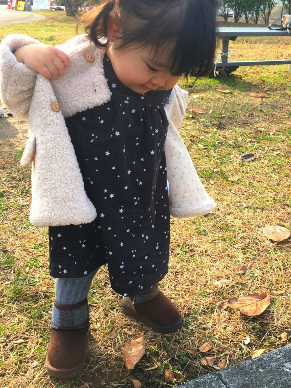 寒いのに、上着が邪魔みたい😱 今日は黒色中心に¨̮ 星柄ワンピースにタイツで✩ シンプルで使い易いものを買う傾向になってきてる👀✨ いつも、いいね¨̮save¨̮ありがとうございます♡