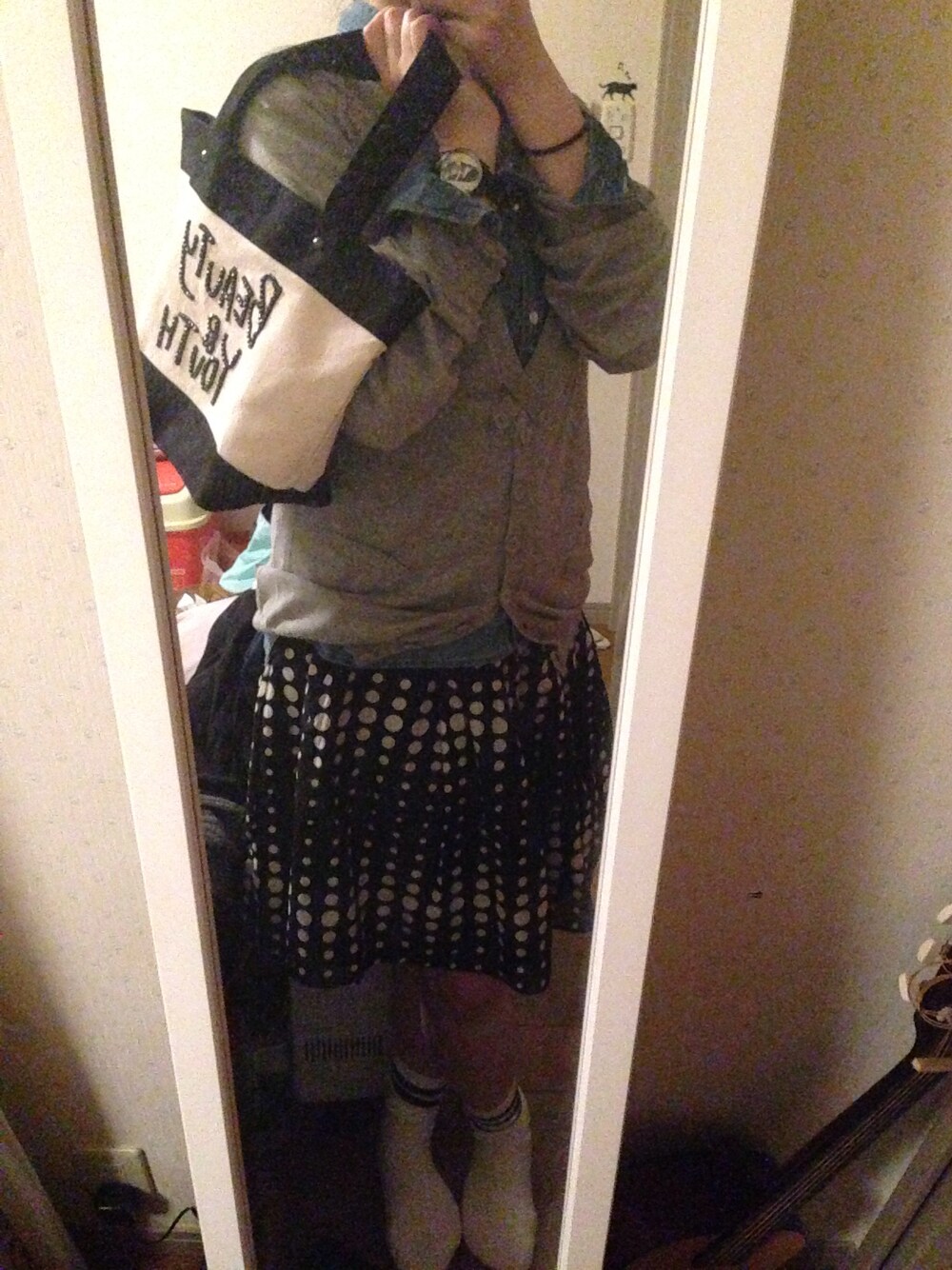 カーディガン:Paul Smith スカート:Paul Smith BLACK LABEL 腕時計:Marc by Marc Jacobs