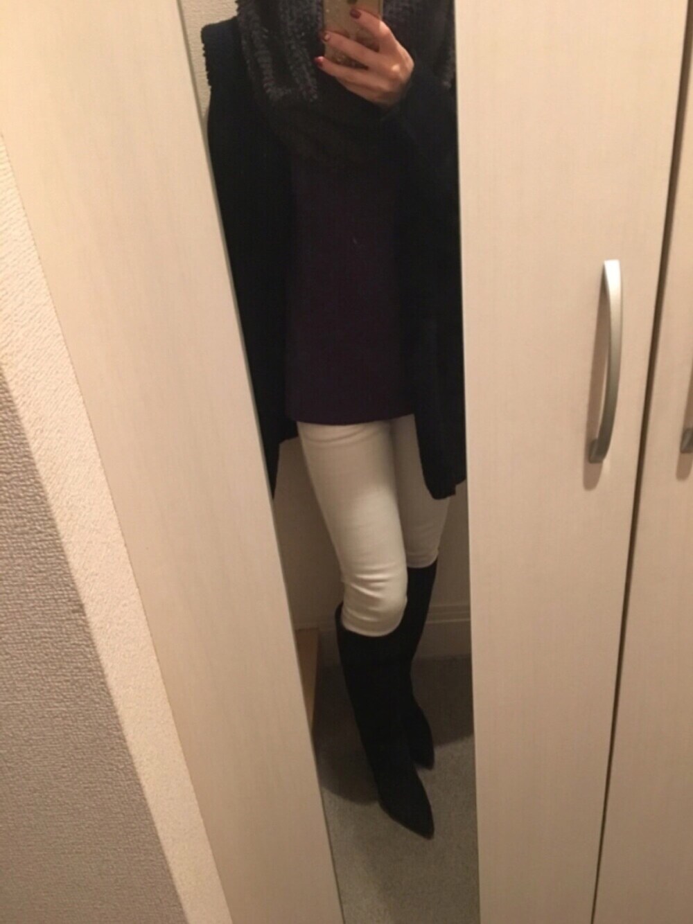 今日もポカポカ陽気。 昨日は、冬至で日照時間は、短いのにね。 コーデポイント、 ホワイトパンツをブーツインして 乗馬スタイルに🏇🐎 上には、カシミアニットを合わせて緩めに。 そして、アウター初登場。 裏生地にボアがついてて、とっても暖かいの!優秀なこ! やけど本日は、暖かすぎた!