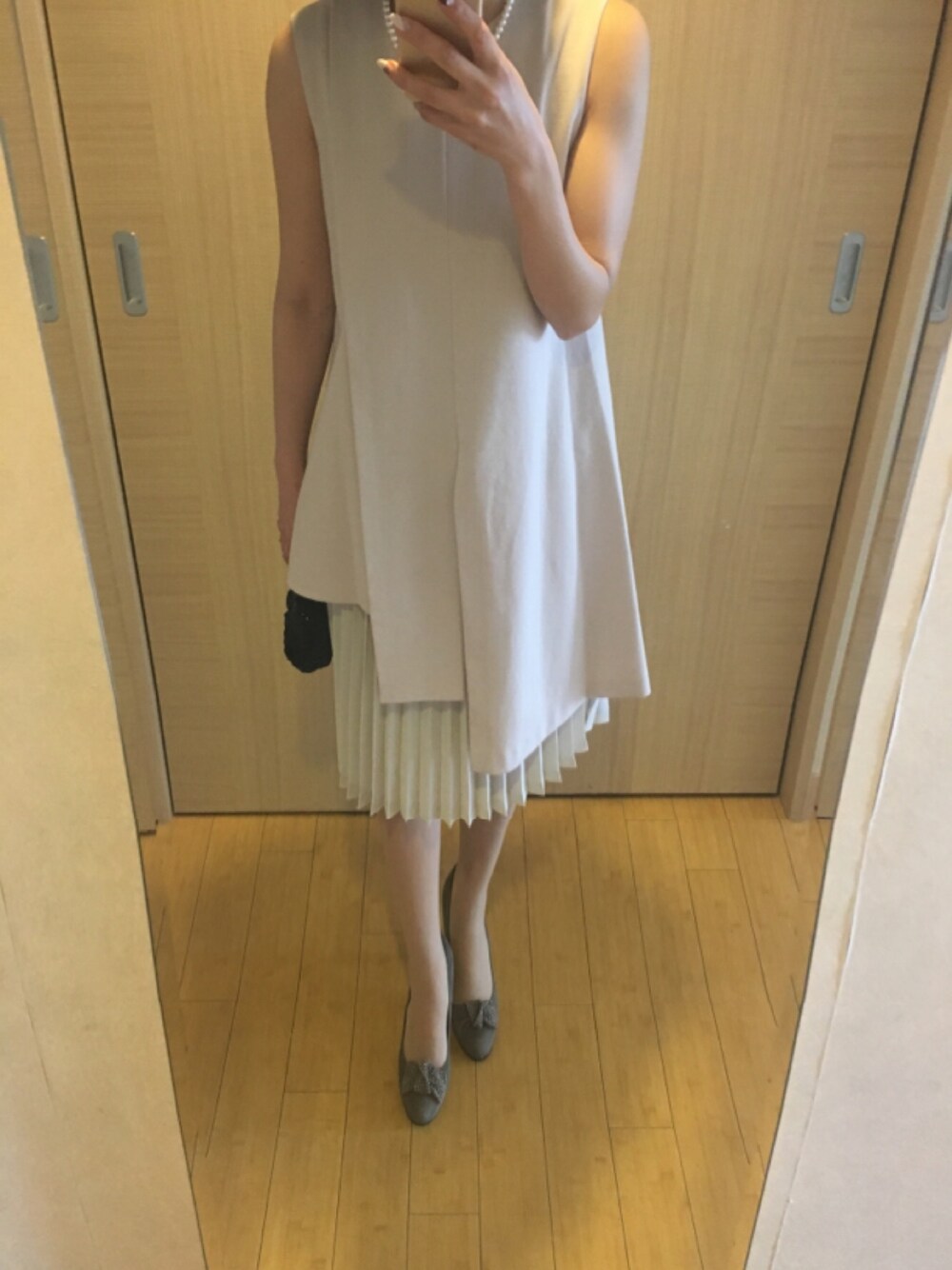 結婚式およばれコーディネート・:* ೫̥͙♡* 沖縄って事もあって、色はベージュに。 でも、華やかさを出すためにパールは忘れずね! このワンピは、普段遣いもし易いし、ちょっとしたデートなどでも大活躍❤️すること間違いなし! お腹周りもゆったりしてるから、食べ過ぎても大丈夫👌