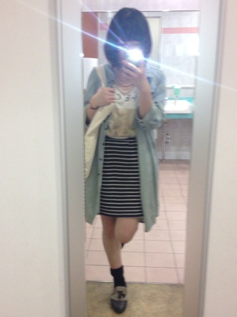 7部丈の袖のワンピース羽織って 過ごしました(。•ө•。) 大阪は今日もあったかかったです* 今年初素足デビューです♪ カメラの調子が悪くてライトONです。