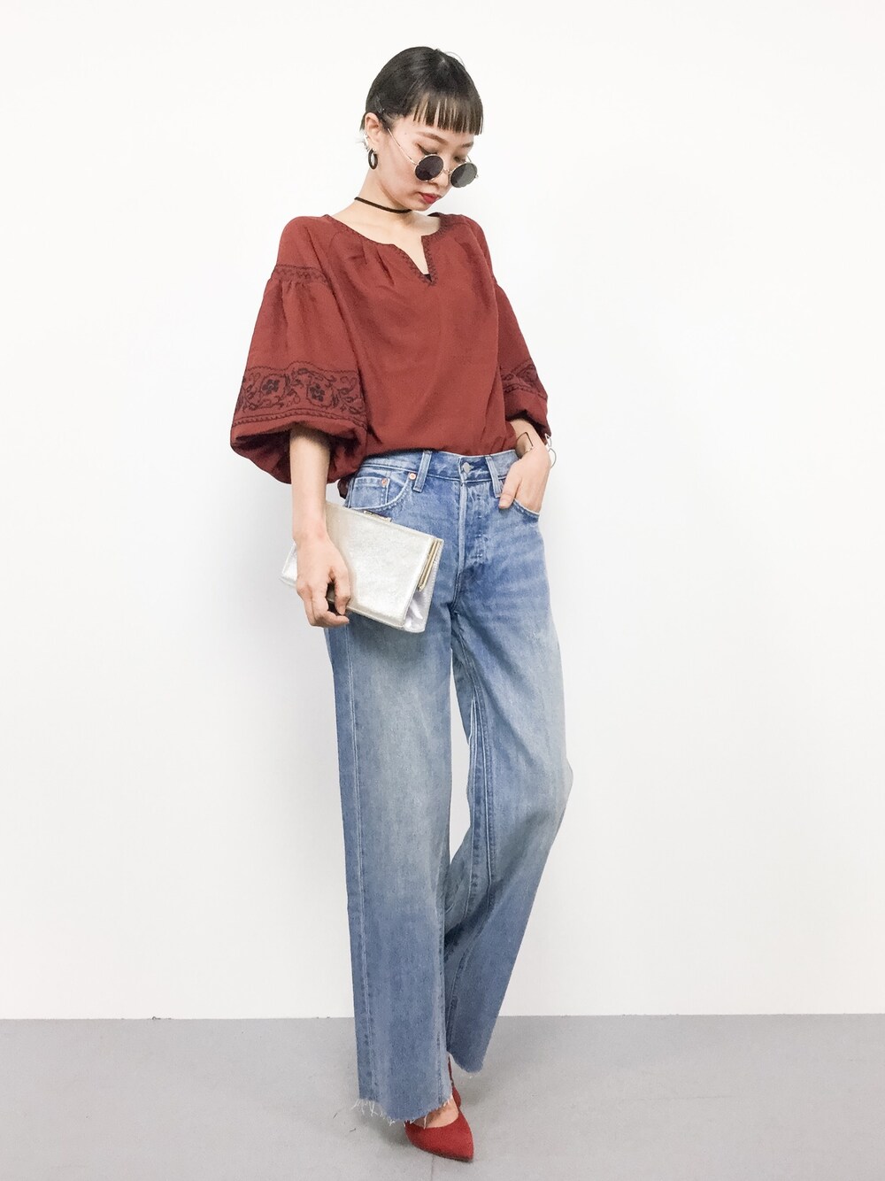 COLLENTE(yuco)のシャツ/ブラウス「刺繍袖バルーンブラウス」を使ったコーディネート