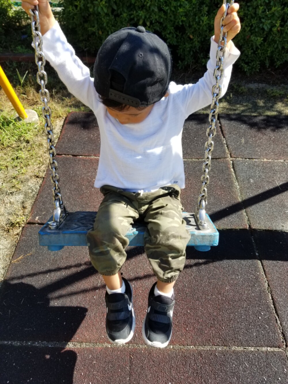 怖い怖いといいながら乗るブランコ。