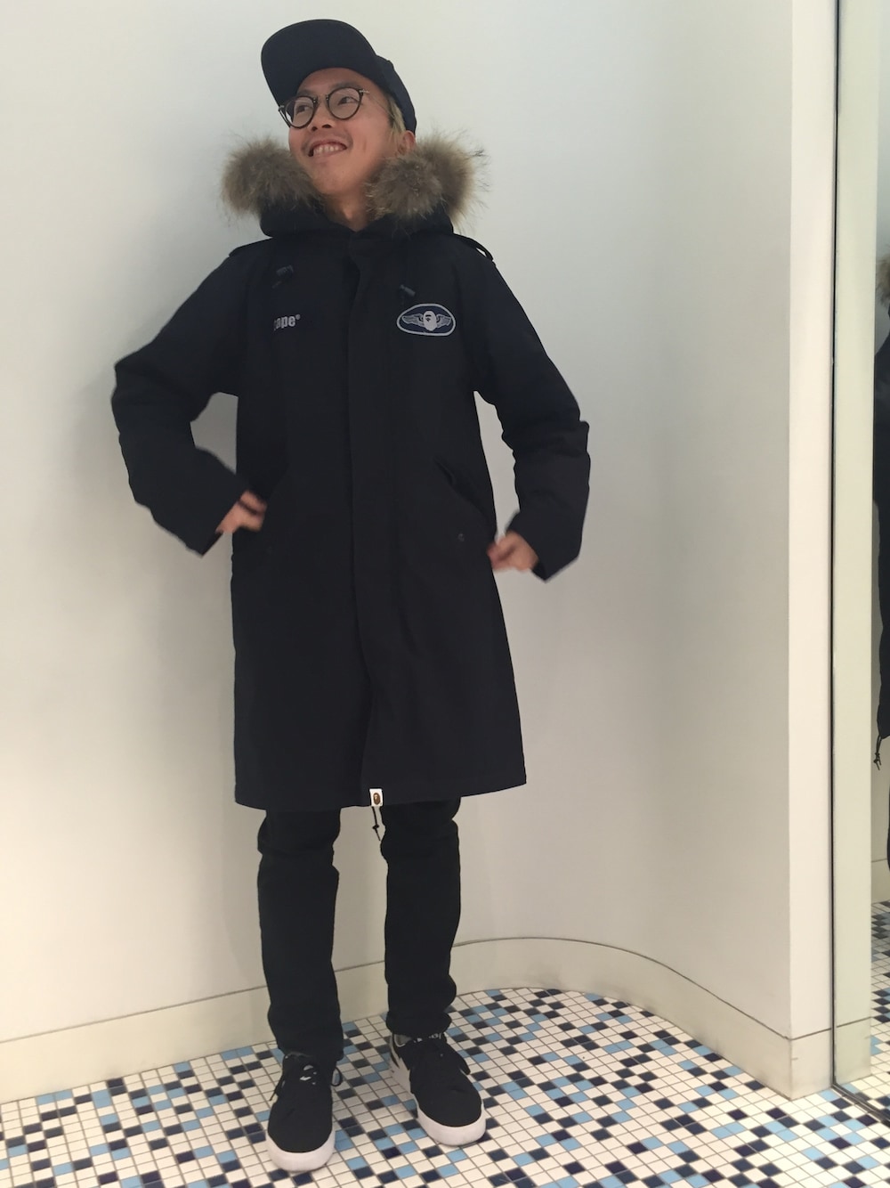ダークトーンでまとめました。モッズコートは袖がCOLOR CAMOになっており存在感が増します。フードのファーは取り外し可能となっています。