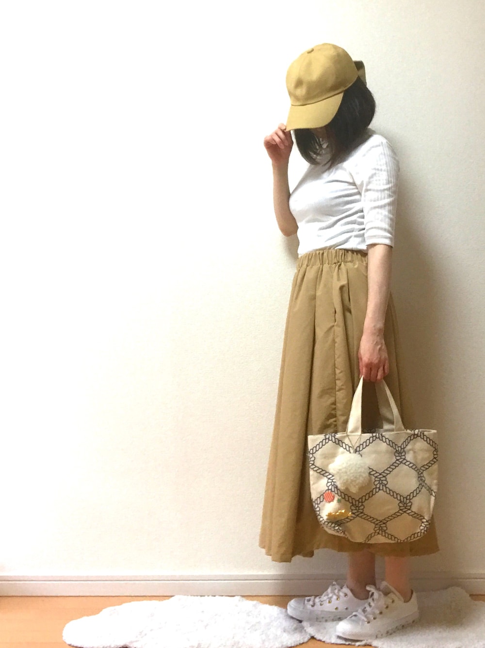 ベージュ、ホワイトコーデ❤️ スリープのトートバッグは久しぶりに使いました。