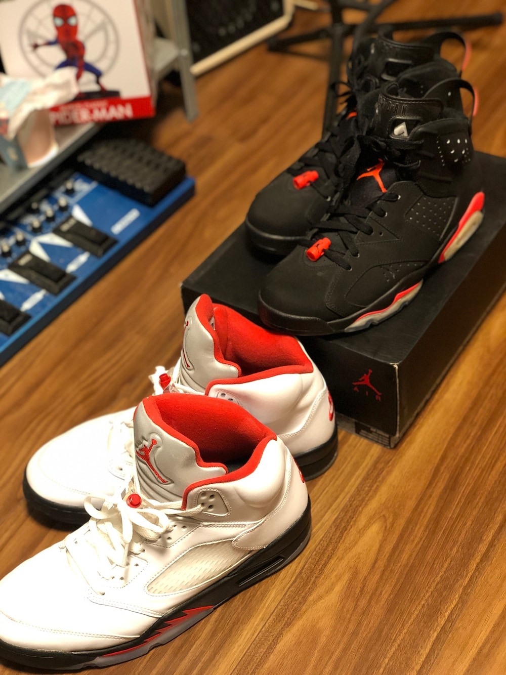 ブラック系のスニーカー、ホワイト系のスニーカーを着用したメンズの秋コーディネートの1枚目の写真