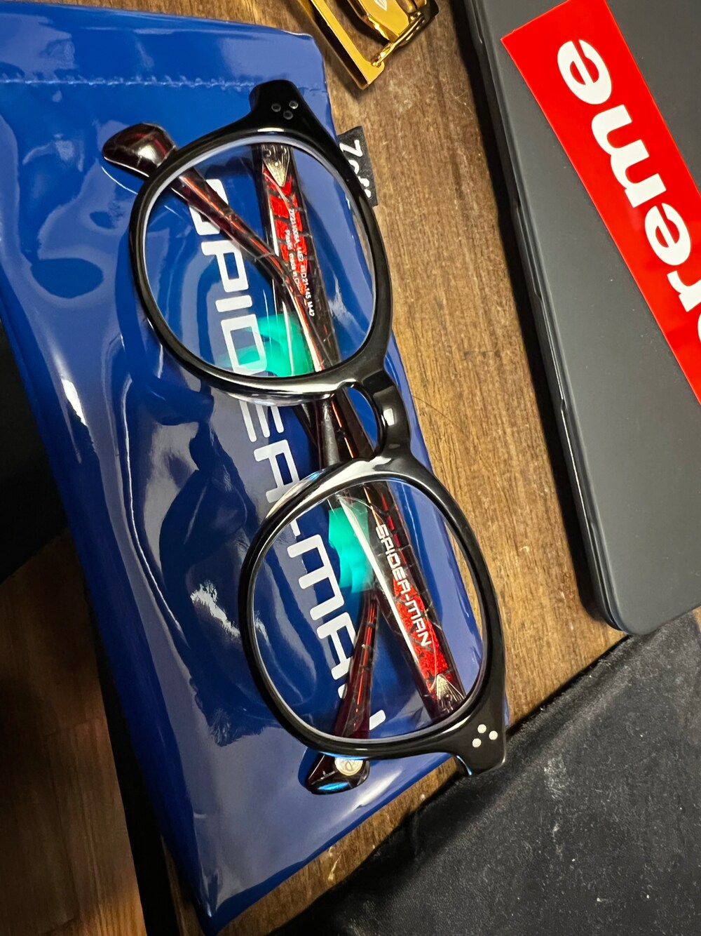 ブラック系のメガネを着用したメンズの冬コーディネートの1枚目の写真