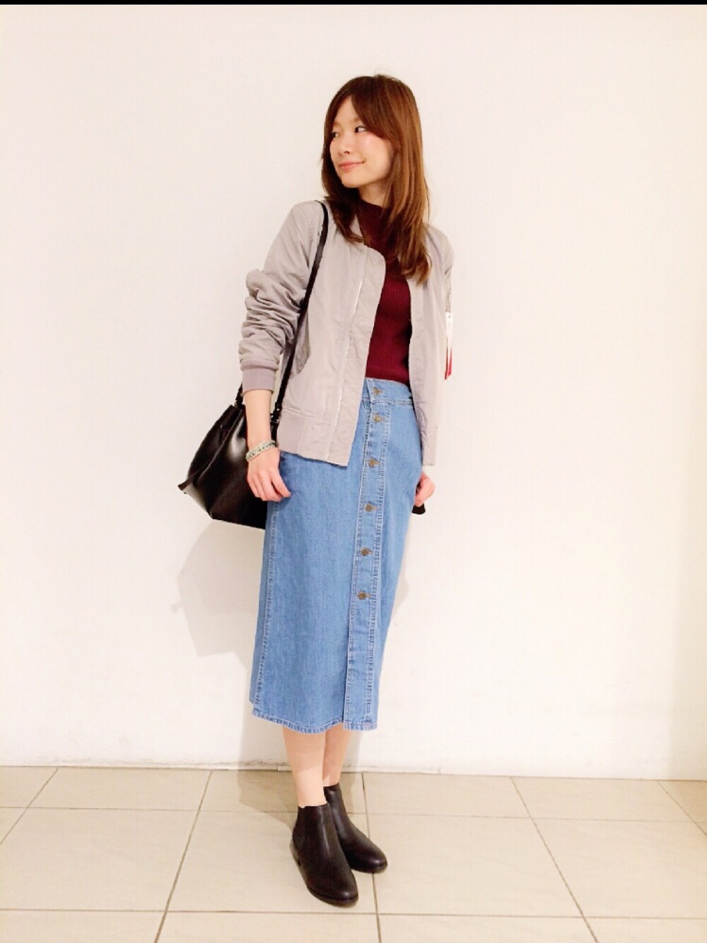 kaneharaのスカート「UR ボタン付スリットデニムスカート」を使ったコーディネート