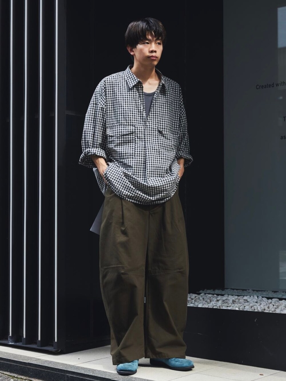 SHIOTAとのコラボのパンツです。あまりない強めのバルーンシルエットです。普通のパンツに飽きてきて変わり種が欲しい方にはオススメです。