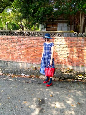 「古著のアイテム(ワンピース、ブルー系)」を使った、yuhsiaooooさん(レディース)の秋コーディネート